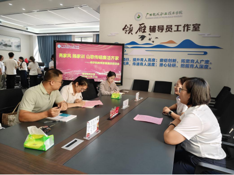 2025年10月13日,为充分发挥家庭监督促廉作用,进一步教育引导广大干部培育良好家风,同心共筑家庭廉洁防线,商学院党支部邀请学院干部家属代表开展“亮家风 扬家训 山歌传唱廉洁齐家”主题家属代表廉洁座谈系列活动。