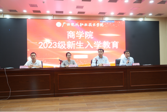 9月13日上午,商学院2023级新生入学教育在综合楼演艺厅隆重开课。商学院全体领导班子出席,2023级辅导员、班主任、班主任助理及全体新生参加。会议由商学院副院长叶秉高主持。